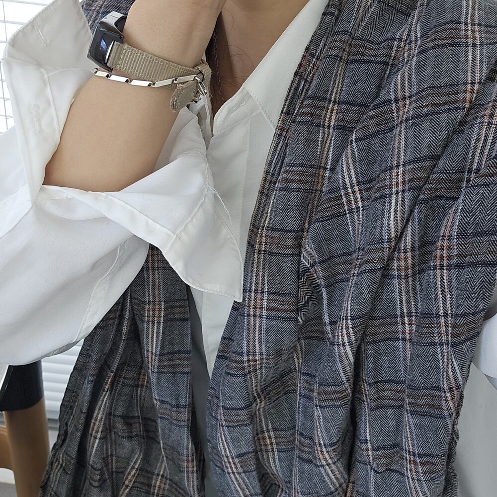 헤링본그레이 체크 면 머플러