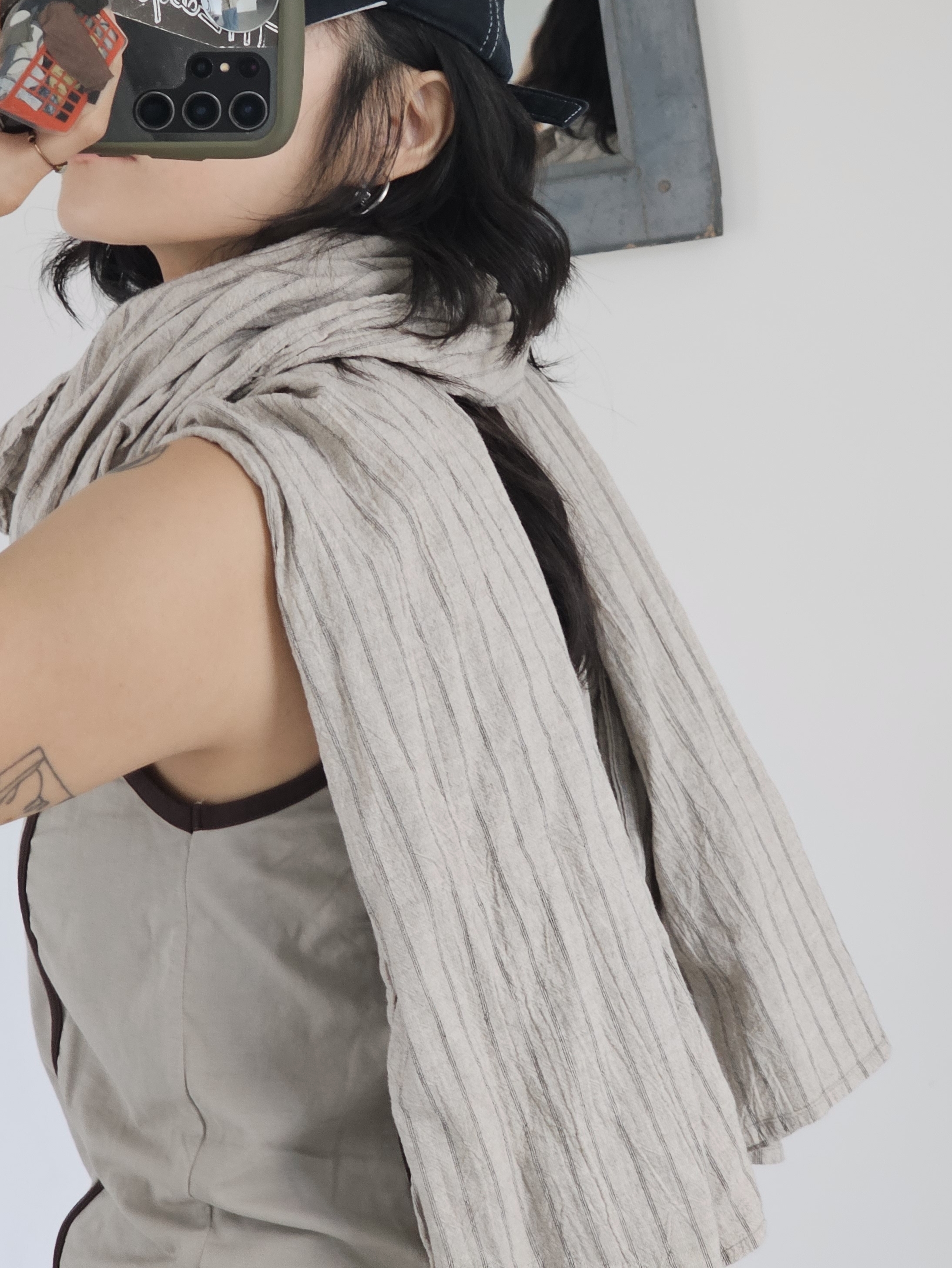 오트밀 스트라이프 면 머플러