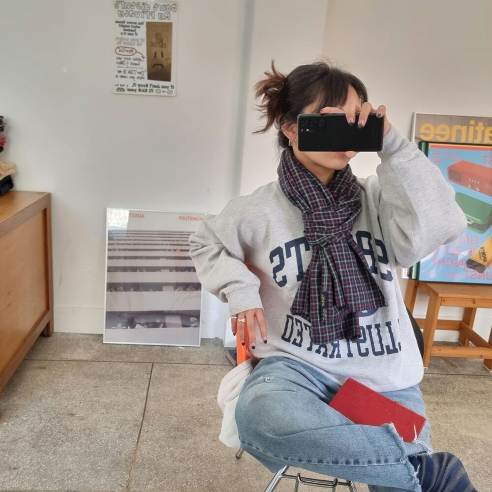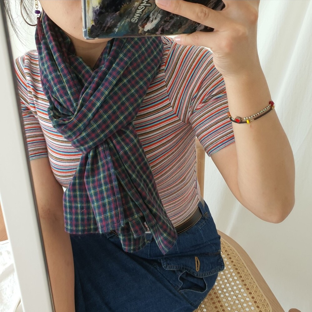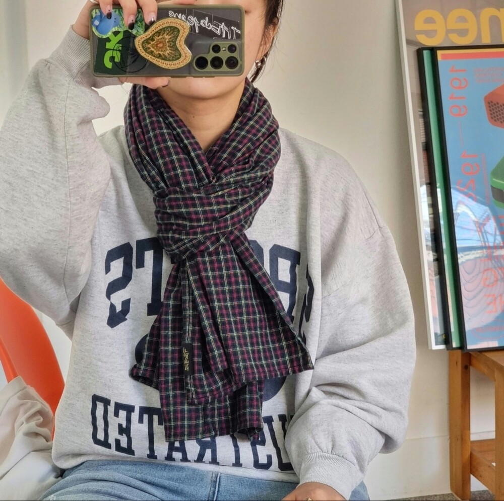 빈티지 스몰그린 체크 면 머플러 (Re-release)