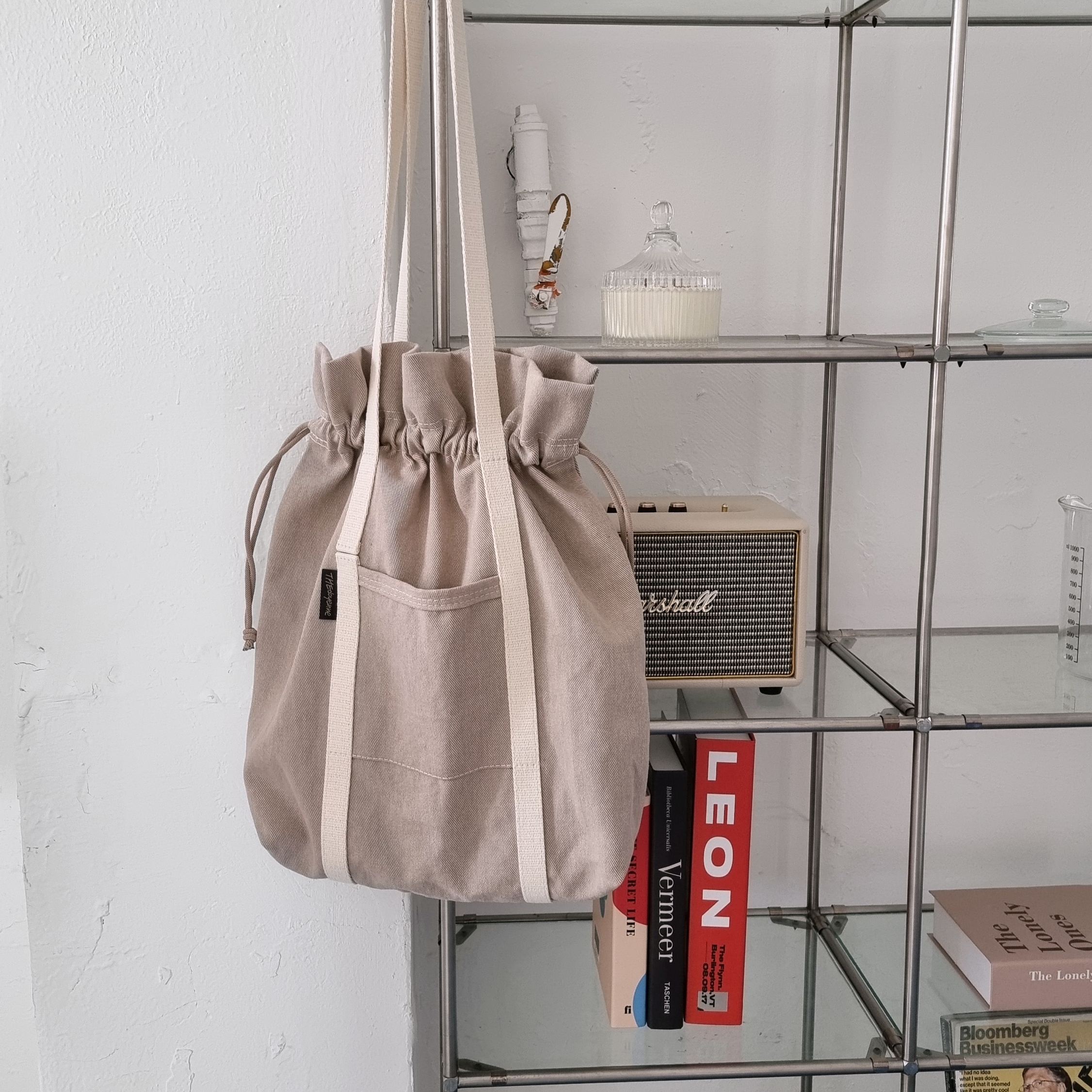 수납 복주머니 숄더 트윌백 _pink beige