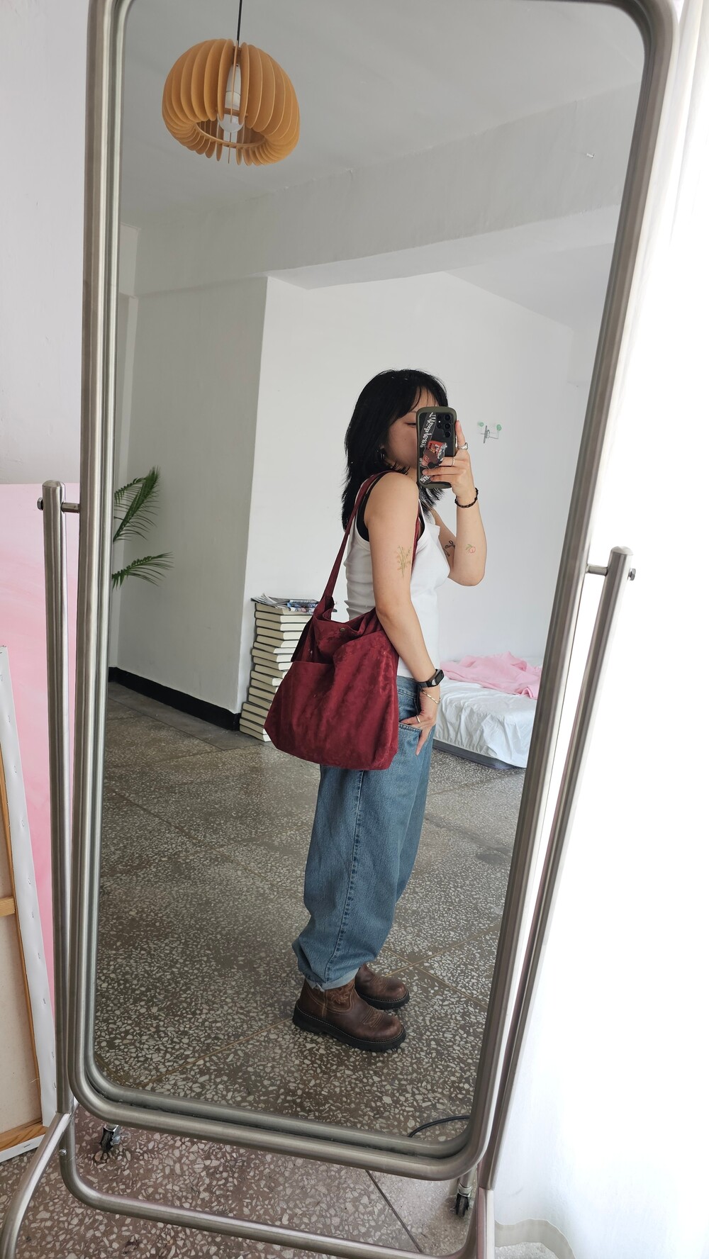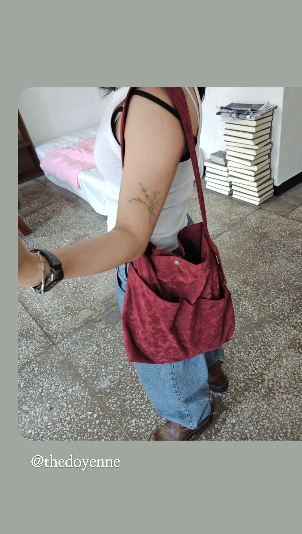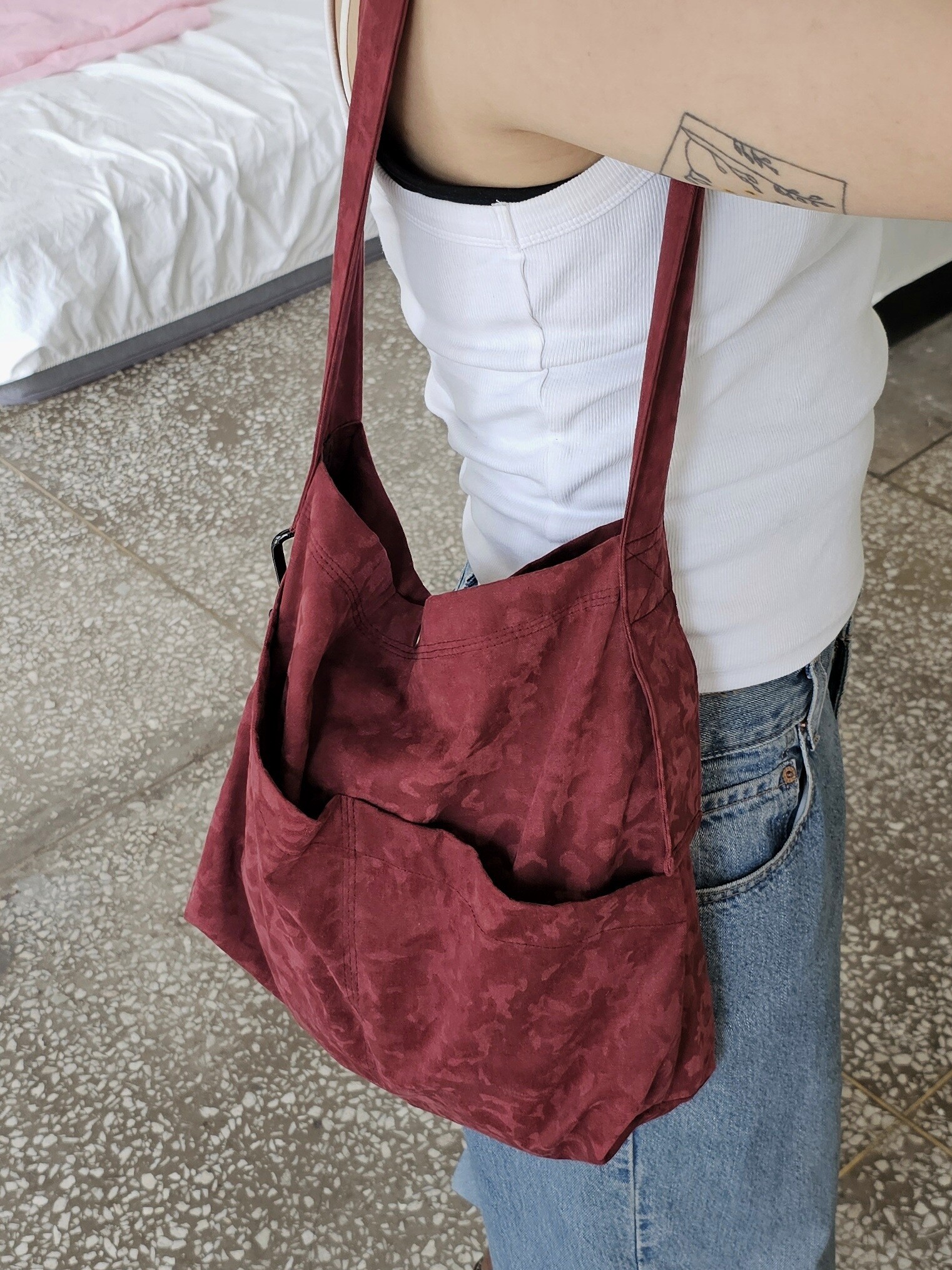 와이드 스트랩 카모 숄더백 _soft burgundy